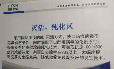 第二,高科技产品研发的概念。天康生物,他们始终站在世界的最前沿,从战略优势的位置占据最高点。他们引进了世界上最先进的疫苗制造设备;他们在病毒种子生产方面遥遥领先;他们在生产技术上一直处于一流水平。正是因为他们技术领先,设备一流,研发先进,意味着生产的疫苗产品在世界上处于领先地位。