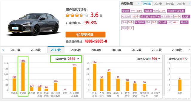 除了各大汽车网站论坛里大量名爵车主的怨声载道,在国内知名的第三方汽车品质评价平台——车质网上也有大量的车主进行投诉维权。