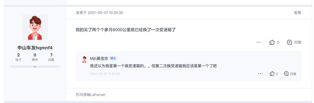 对此,有网友留言表示:我的买了两个多月6000公里就已经更换了一次变速箱了。