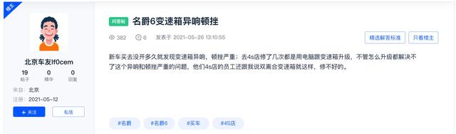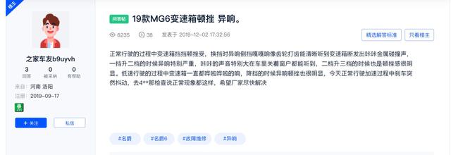 8月31日,就在上汽名爵发官微为其新车型MG ONE卖力吆喝,喊出要“重新定义智能时代中国潮跑SUV新标准”的几乎同一时间段,汽车之家名爵6论坛内一位名为:Mjh莫佳欢的车主则发出了“一年的时间,变速箱屡次出现故障,上汽名爵,请给出说法!”的请求。