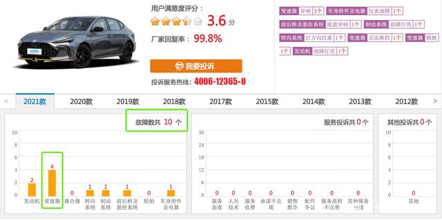 值得注意的是,刚刚于8月12日才上市的2021款名爵6以及名爵6PRO车型所搭载的变速箱依旧是与2020款相同的7速湿式双离合,尽管上市才不到一个月,但在车质网上我们同样发现了10起质量投诉里有4起是关于变速箱问题的,由此可见2021款名爵6全系车型,虽然也换了7速湿式双离合,但是可靠性依然还是个问题,所以,对于打算购买2021款名爵6车型的朋友来说,这里有必要提醒一下,还需三思而行。