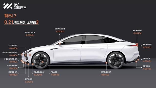 如何有效地利用空气,这是流体力学的研究方向,也是机械领域的发展过程。现代F1赛车利用空气产生了强大压力,这让赛车在极高的速度下都可以紧贴地面。而民用车尤其是电动车,则应该做到“万花丛中过,片叶不沾身”。超低风阻感知最明显的用户收益是续航能力的提升,智己L7官宣的全系车型续航都能达到600公里以上。