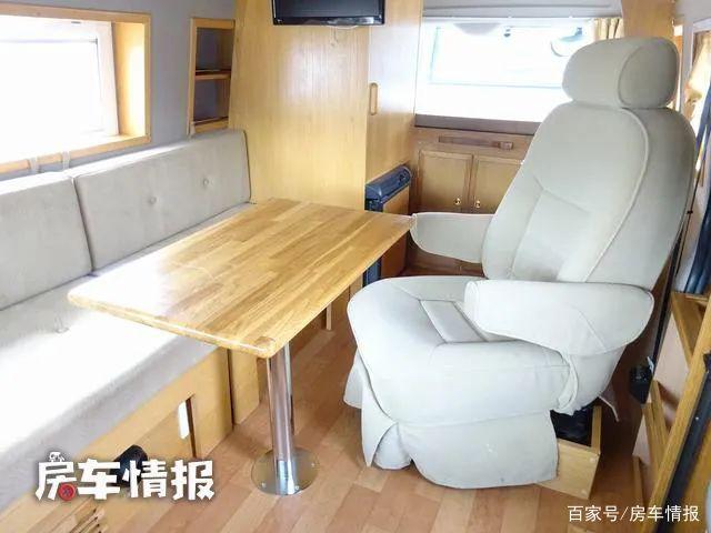 主驾驶座椅后方是一长排的沙发,相比普通的乘客座椅,舒适性略差,不过这辆车还有一个比较特别的配置,就是在临近乘客门的地方放置了一张类似老板椅的单人沙发,不仅带有头枕和扶手,还能够旋转,并且舒适度和柔软度相较于长条沙发还是比较不错的。