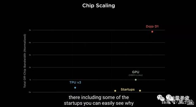 特斯拉D1芯片之间可以实现无缝融合,这使它能够达到8 TB/s的IO,比ASIC和英伟达高出一个数量级。