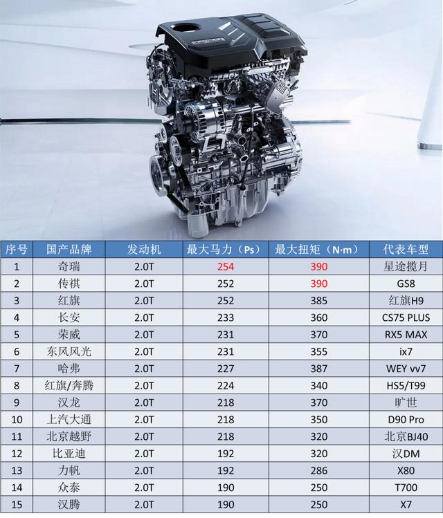 这个数据跟奇瑞那台最强2.0T(261Ps/400Nm)已经相当接近了,不管是放在自主还是合资中都是属于名列前茅的,传动则是匹配来自爱信的8AT。