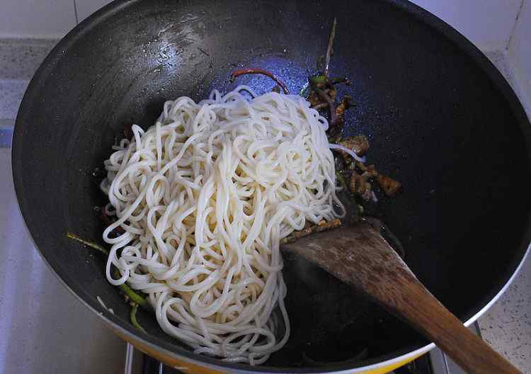 12 再和里脊肉丝翻炒在一起,充分炒匀。