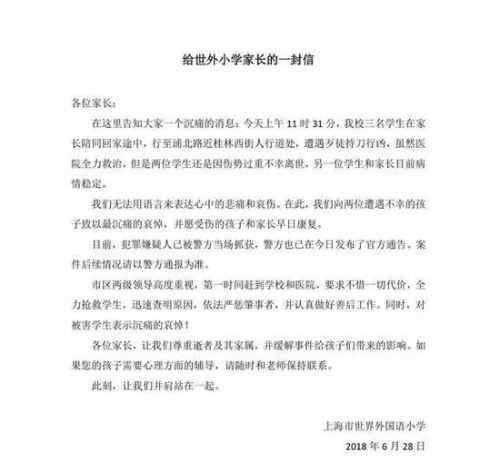 2.《我是学生网上海站 沉痛哀悼!上海世外小学回应小学生被砍事件:肩并肩站在一起》仅供读者参考,本网站未对该内容进行证实,对其原创性、真实性、完整性、及时性不作任何保证。
