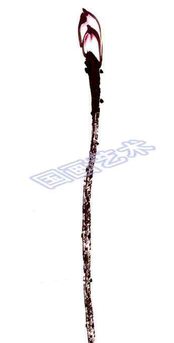 干笔蘸浓墨,从背面开始。移动到中心后,书写速度加快,形成干墨线和飞白线。莲梗自然显得老而尖。↓↓↓
