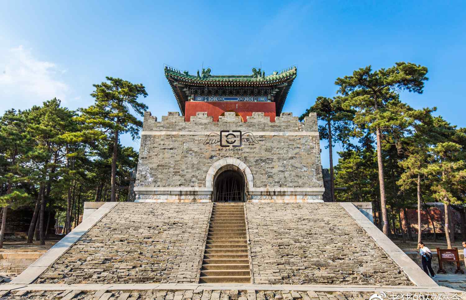 春晖皇贵妃方城明楼。注意寺庙的屋顶,围墙,花园的角门都是绿色琉璃瓦,这是规定。只有皇帝才能用黄色琉璃瓦。