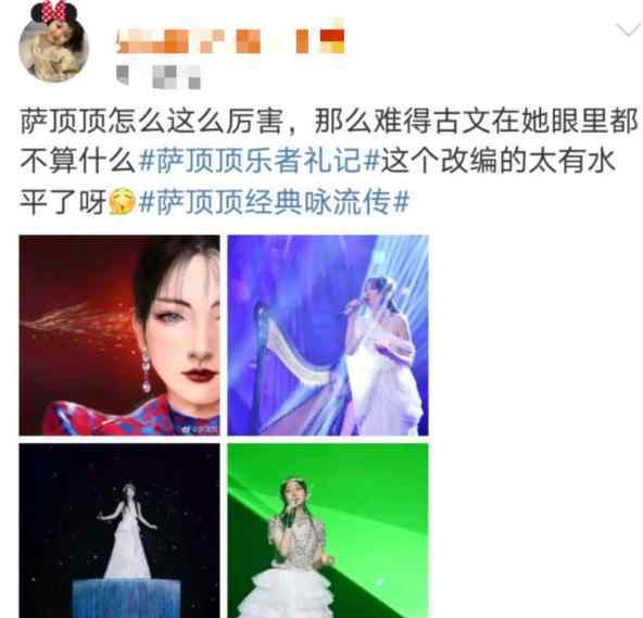 萨顶顶一直擅长演唱具有传统文化魅力的中国古歌。把古论文作曲成歌的时候旋律还是那么好听!