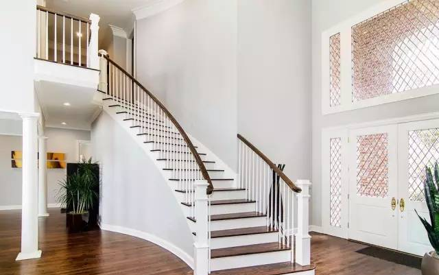 如果你家别墅够大,你想让别墅内部装修看着更大气,那在建造楼梯时,就不要过多考虑楼梯的实用性,而更应该考虑楼梯的外观设计,看哪种设计看起来气势更足、更大气!