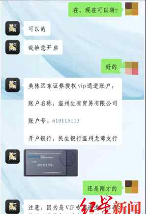 闫女士想起了李奕在课上说VIP通道可以不用排队,便申请开通VIP通道。客服发来一张收款账户卡片,上面写着,“美林远东有限公司授权深圳市某公司承接本公司指定机构投资者及特定投资者大额银行划转业务”,卡片上还有公户行、公户账户、公户名等信息。