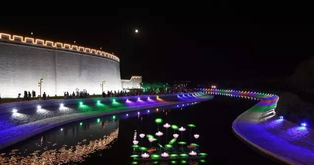 正定古城亮化,以“追寻历史传奇,品味文化魅力,在古城遗韵中感悟人生,在趣味盎然里展望未来”为设计理念,对南城墙、护城河等古城标志性建筑进行高标准亮化。