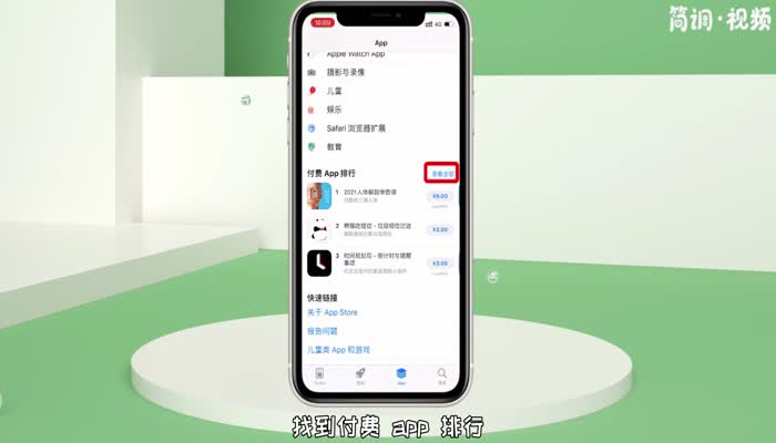 2.滑动手机屏幕找到付费App排名,点击右侧“查看全部”选项,进入付费App排名页面;