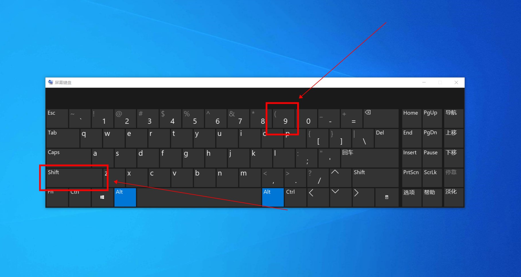 然后按键盘上的“shift(”组合键。