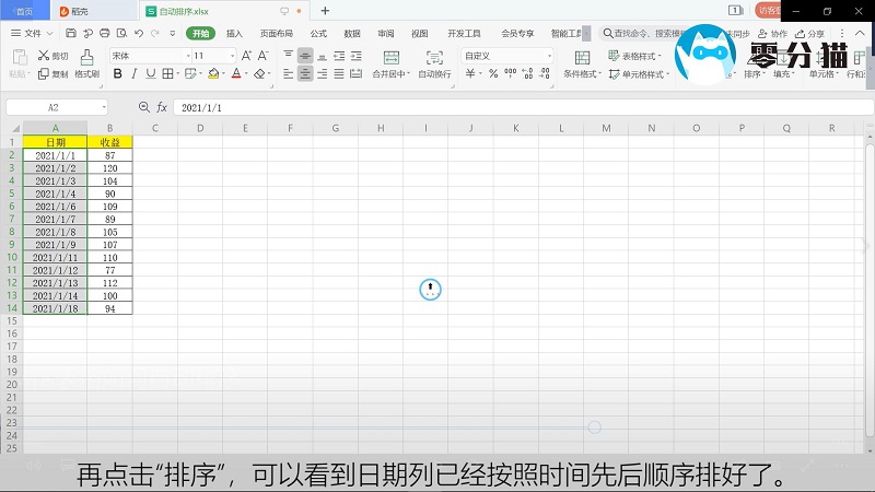 再次点击“排序”,可以看到日期栏已经按时间顺序排列。