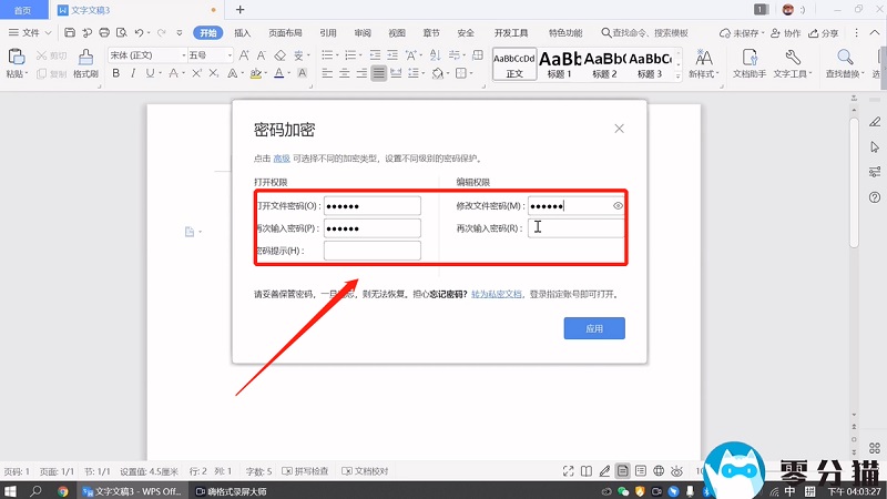 然后在弹出的窗口中输入打开密码和编辑密码。