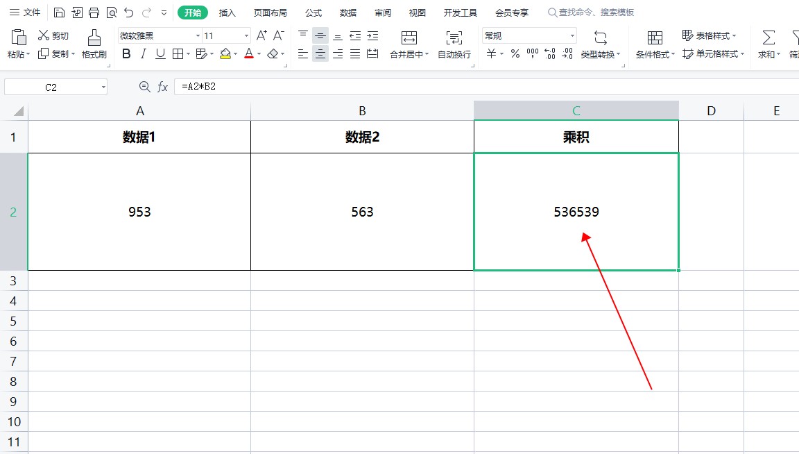 然后选择数据1对应的单元格,输入“*”,再选择数据2对应的单元格。