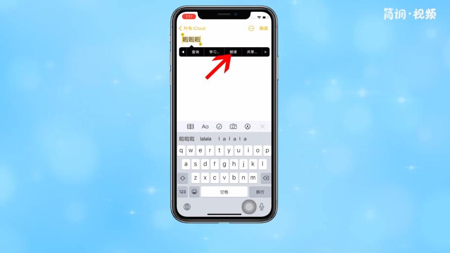 4.然后点击箭头图标,最后点击“朗读”选项,这样Siri就会朗读备忘录了。
