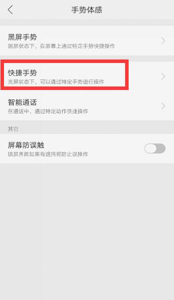 在手机设置中点击“手势体感”。