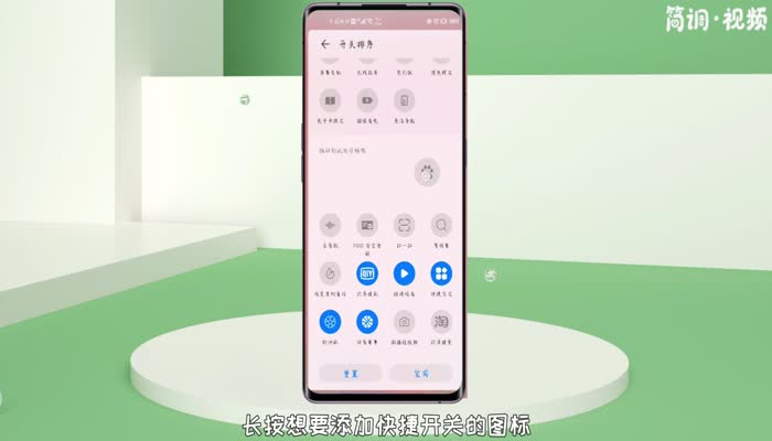 2.在页面底部的选项栏中,按住图标添加快捷开关,拖动到顶部的通知栏,点击右下角的完成。
