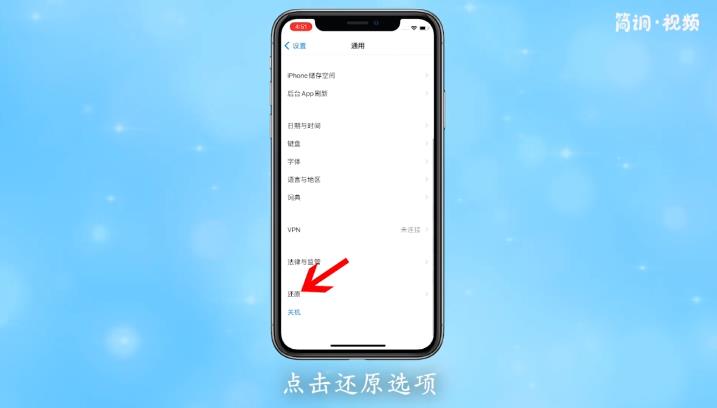 苹果手机4G网卡,点击通用设置页面的“恢复网络设置”选项即可解决。具体操作步骤如下: