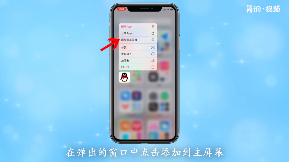 3.按住这个应用,在弹出的窗口中点击“添加到主屏幕”,当你返回到主页时就可以看到应用已经成功恢复。
