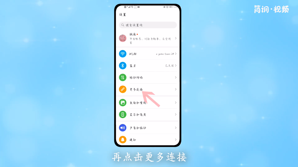 1.打开手机点击“设置”选项进入设置界面,然后点击“更多连接”;