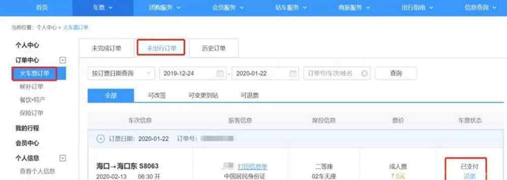 4.如您需要退票费报销凭证,请凭购票所使用的乘车人有效身份证件原件和订单号码,在办理退票之日起10日内到车站退票窗口索取。