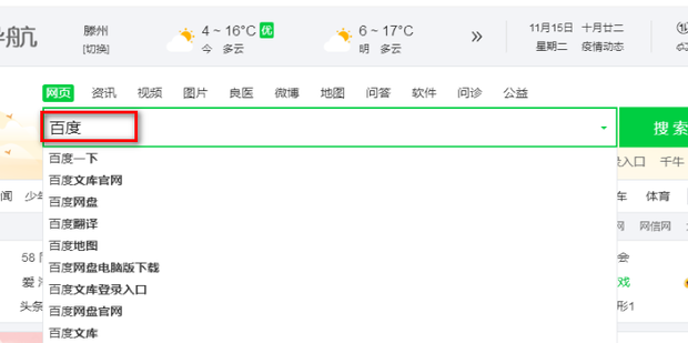 - 然后在浏览器中搜索百度。