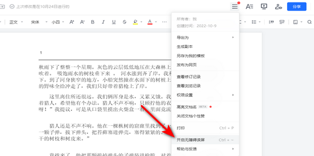 - 点击开启无障碍读屏,这样即可更改阅读模式。
