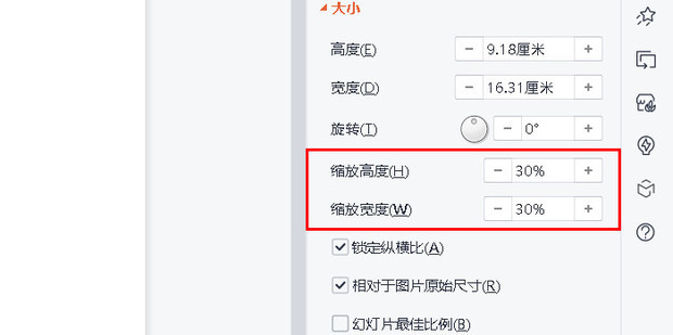 - 最后根据个人需要增大或减小缩放高度与宽度中的百分比数值即可。