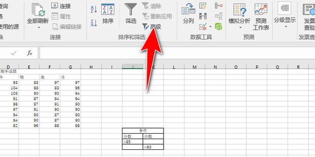 - 如果条件发生改变,则筛选出数学成绩大于85且小于102的记录。