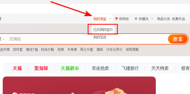 - 点击最上方我的淘宝,选择已买到的宝贝。