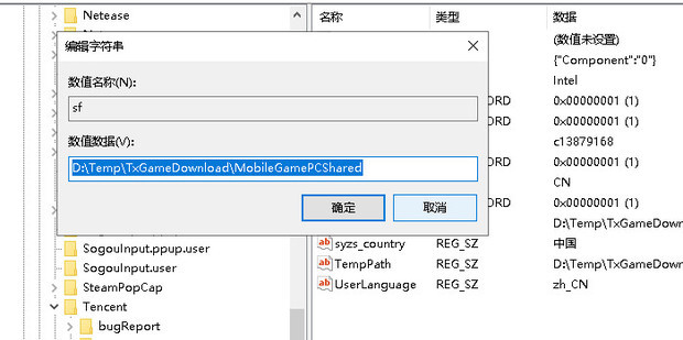 - 进入注册表页面在 HKEY来自_CURRENT_USER\software\Tenc360新知ent\MobileGamePC中找到sf。