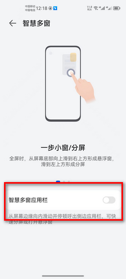- 最后将智慧多窗应用栏选项关闭即可。