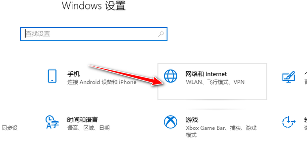 - 然后打开Windows设置,打开网络。