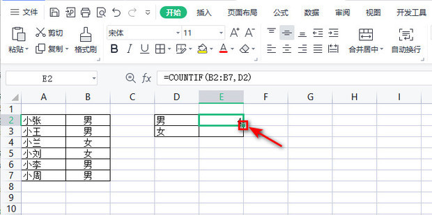 - 括号内选择B2至B7单元格。