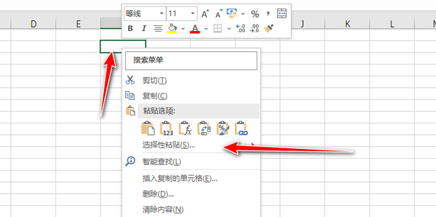 - 然后在年引审空白单元格右键点击选择性粘贴。
