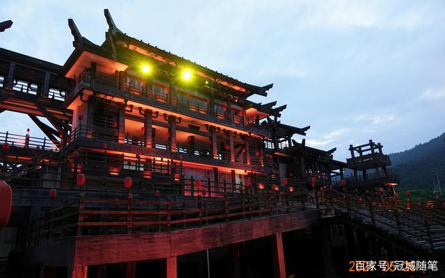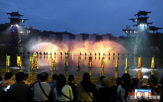在看台上,邻座的忠州税务所所长、县作协副主席王朝清告知:《烽烟三国》大型实景演出剧场以东汉风格的巨型山寨为主体,形成陆地、山坡、峭壁、水域等复合表演区。