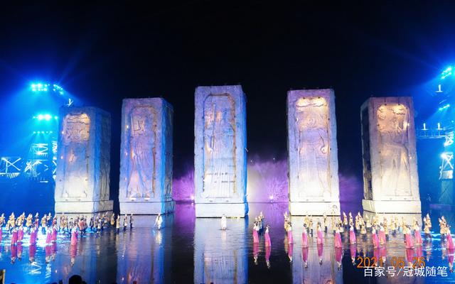 据秦勇介绍,《烽烟三国》实景演出地为蜀国大将姜维系马之地。通过35000平米的全水域舞台,3200平米水幕投影、3D全息式投影、300米大跨度、全球最大高速威压系统,能够轻松将每尊上百吨重的“五虎上将石柱”轻松运转,将可容纳1900人的观众席180度环形灵活移动的大型舞台机械设备构成。