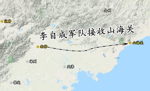 山海关大战不复杂,打了两天,4月21、4月22,打了两天。李自成率了败兵就往关内撤,当天,4月22当天,清摄政睿亲王多尔衮宣布,封吴三桂为平西王,然后拨了一万军队归吴三桂指挥,往前追李自成的军队。这吴三桂军队打前锋,八旗军队在后面。李自成逃回北京,多尔衮的军队和吴三桂的军队联合起来就追击李自成,往北方追。