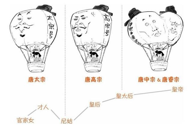 武则天“升职记”横跨三个皇帝被戏称为“三李囤”, 意思是武则天的成功与李家祖孙三代的助攻脱不开关系。还风趣地描述说:如果武则天上天坐的是热气球,那李家三代就是气球里的三把火。