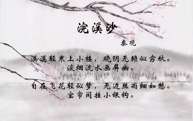 苏轼是北宋豪放派词人,而秦观是北宋婉约派词人,同样是一生坎坷,秦观却学不来苏轼的豁达,秦观少年时代写下的《浣溪沙》:“漠漠轻寒上小楼,晓阴无赖似穷秋。淡烟流水画屏幽。自在飞花轻似梦,无边丝雨细如愁。宝帘闲挂小银钩。”他笔下的春愁,将飞花比作梦,将细雨比作愁,更像是闺中女子感时伤怀的自叹自怜,所以秦观也逃不开风月场这一世的寂寞,民间更是流传《苏小妹三难秦少游》的故事,才子佳人的风流韵事,真真假假,莫不如是。