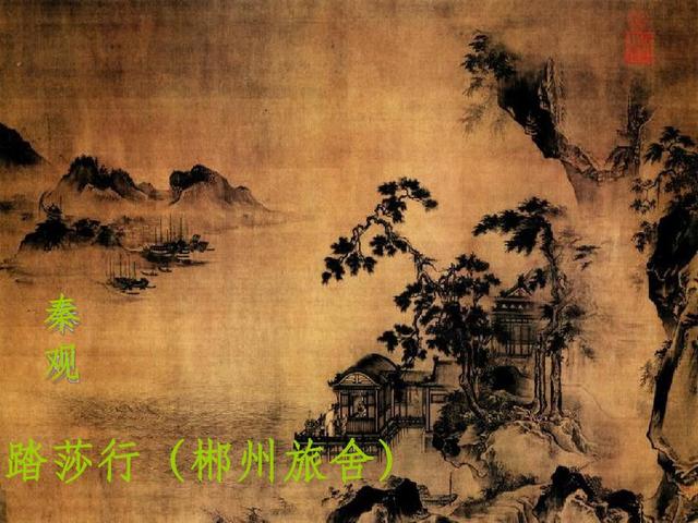 在苏轼的劝说下,秦观开始准备科考,两度应考均名落孙山,直到36岁终于考中进士,在苏轼的引荐下成为太学博士,后迁秘书省正字。苏轼可以说是秦观前半生的贵人,可在后期生涯中,秦观成了残酷政治斗争的牺牲品,以"不检"为名,一贬再贬,他渐渐对政治灰心,且有退隐之意,这首《踏莎行》是秦观贬谪于郴州旅店所写:“雾失楼台,月迷津渡。桃源望断无寻处。可堪孤馆闭春寒,杜鹃声里斜阳暮。驿寄梅花,鱼传尺素。砌成此恨无重数。郴江幸自绕郴山,为谁流下潇湘去。”抒写了失意人的凄苦和哀怨的心情。