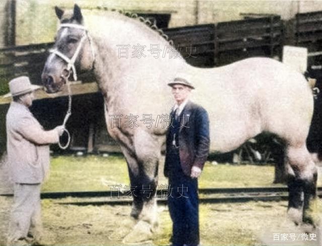 你见过最大的马是多大的?照片中的这匹马,看上去不但非常高大,而且身体异常强壮,它的一只蹄子比成年人的脚都大。站在它身边的两个成年美国男士,看上去就像是小朋友一样。实际上,它成年后的身高是6英尺6英寸(1.98米),体长达10英尺2英寸(3.10米),体重3200磅(1451公斤),有人将其称之为是“世界上最大的马”。它或许不是世界上最高的马,但公认为是最重的。