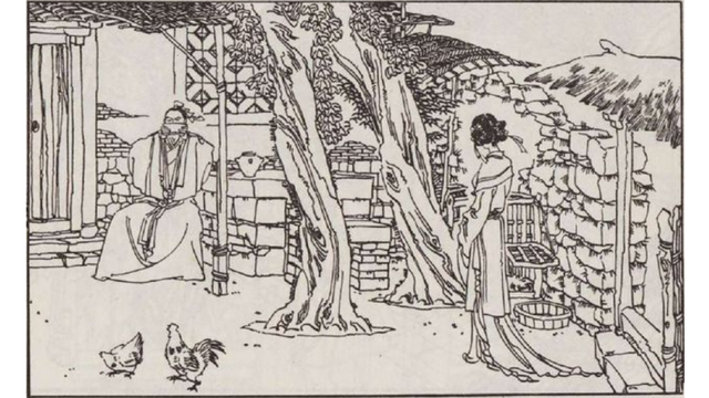 乔老翁试探鼻息,发现还有呼吸,急忙划船靠岸,背着他前行。走了不到两里路,出现一座茅草屋,正是他的家。乔老翁把他安置在床上,盖上被子。