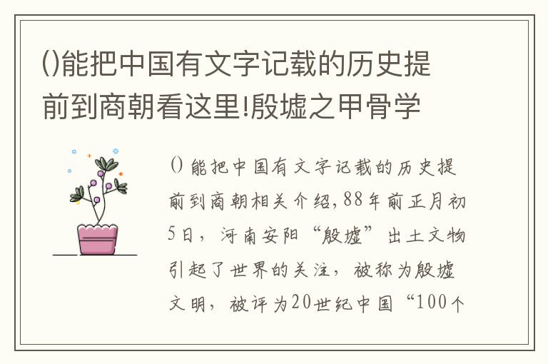 2.《【能把中国有文字记载的历史提前到商朝】它是中国商朝晚期都城遗址,又称为“商邑”、“大邑商”》仅供读者参考,本网站未对该内容进行证实,对其原创性、真实性、完整性、及时性不作任何保证。