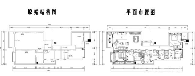 讲真的,我看到这套房子的原始户型图时,第一感觉就是很不好,厨房在中间,南北过道很狭长,中间还有一个大缺角。但装修就是如此神奇,在改造的时候可以把诸多不完美全给修饰掉。