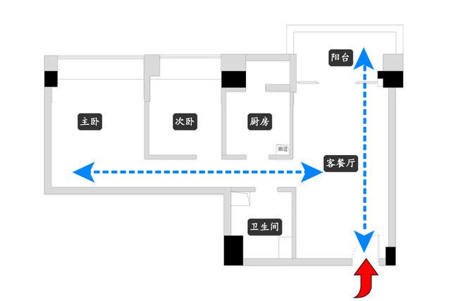 - 在风格上,全屋采用了经典的日式风格的配色和家居元素。其中原木色作为时下最热门的配色,它不同于其他色彩的具象,是一种极具生命力的色彩,质感天然、机理丰富,有着与生俱来的自然之美。话不多说,快跟随小编的步伐,一起来看看吧。  - 基础信息 - 本案例户型2房1厅1卫,套内面积约为60㎡,居住人数2大1小。  - 户型分析 - 整体户型比较常规,进门后是一个很规整的竖厅,所以设计师在格局上并没有做大的改动。唯一不太好的地方就是整体走廊比较长,采光性不足。  - 户型改造 - 针对这一点,设计师将儿童房的入口改为推拉门的形式,同时也取消了厨房门,这样阳面两个房间的自然光都可以顺利到达走廊,整个采光问题就解决了。  - 门厅+餐厅